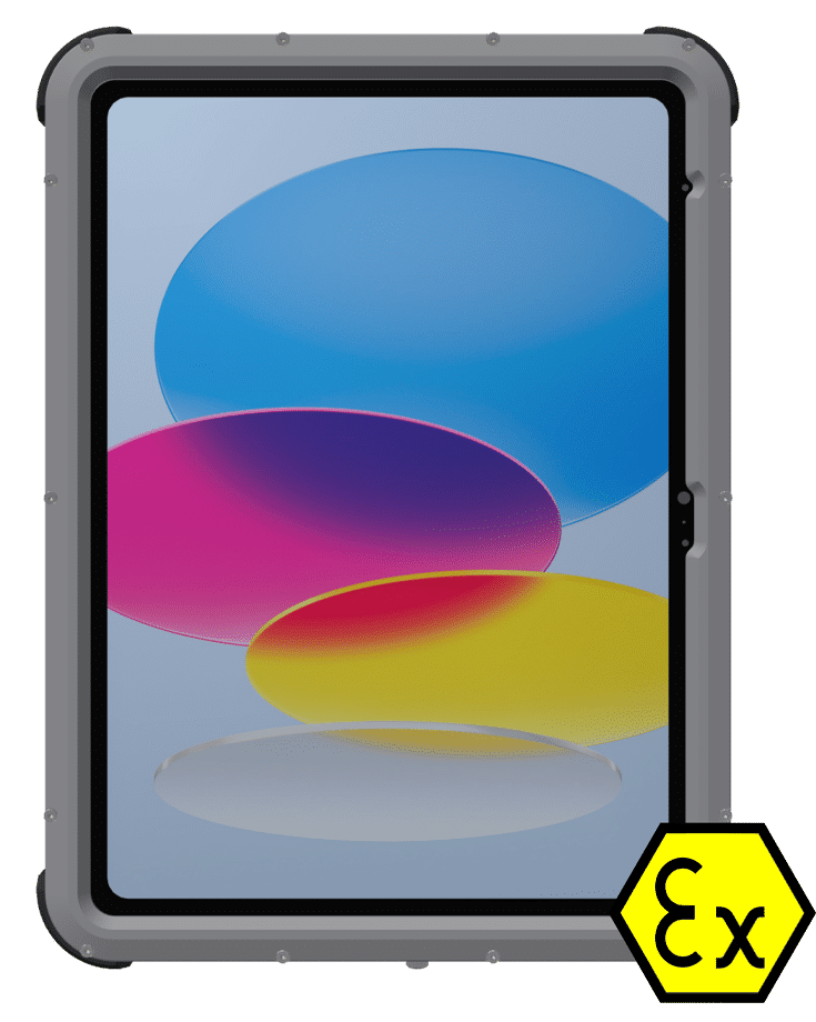 All new from Atexxo Manufacturing, the Apple iPad Pro 11 inch with 5G now suitable for use in hazardous locations. The explosion proof iPads are originally manufactured by Apple than converted and certified according to the ATEX directives by Atexxo Manufacturing. This makes the Tablets suited for safe use in gas/vapor Zone 2 hazardous locations. ATEX Zone 2 is the European equivalent for US, NEC Class 1 Division 2 equipment. (C1D2)